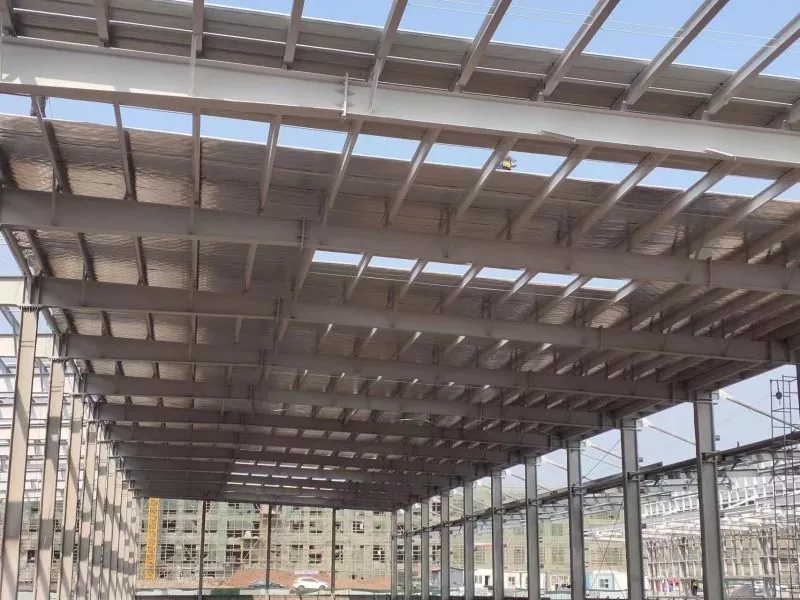 Odgovor: Portalna jeklena konstrukcijska skladišča so običajno montaže v tovarni in nato odposlana na gradbeno mesto za montažo. Proces gradnje vključuje postavitev jeklenih stebrov, žarkov in strešnih rešetk na podlago, ki mu sledi namestitev stenskih plošč in strehe.