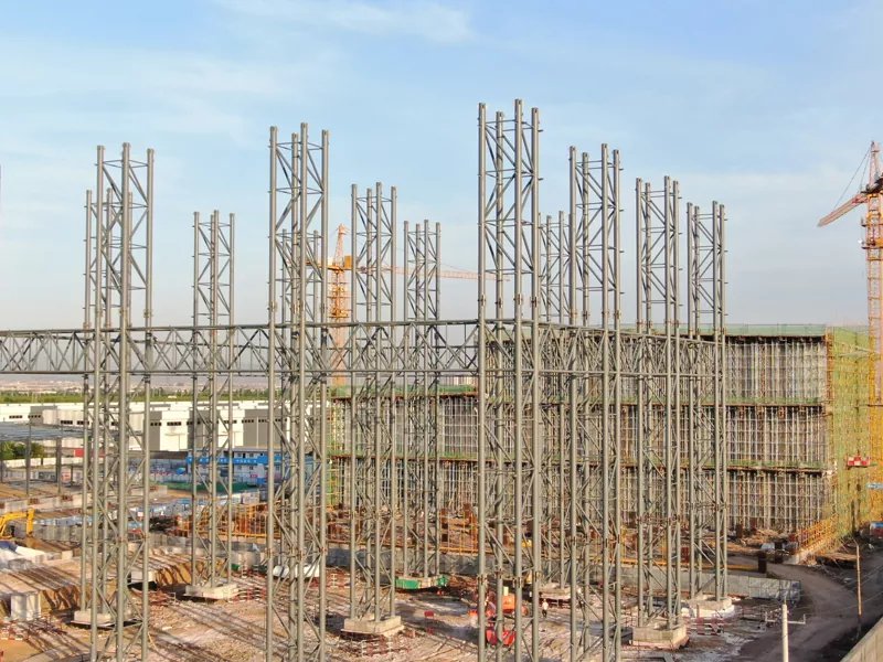 Konstrukcija skladišča jeklene strukture je učinkovit, ekonomičen in okolju prijazen način gradnje. Proces gradnje vključuje predvsem gradnjo temeljev, glavno namestitev konstrukcije, gradnjo podpornih objektov in poznejše vzdrževanje. Konstrukcija fundacije je izhodišče celotnega gradbenega procesa. Za zagotovitev stabilnosti in varnosti skladišča je treba določiti obliko in velikost temeljev glede na lestvico skladišča in geološkimi pogoji. Namestitev glavne strukture je temeljna povezava, vključno z dvigom, pozicioniranjem, korekcijo in povezavo komponent, kot so jekleni stebri, jekleni tramovi, strešni rešetki in stenske plošče.