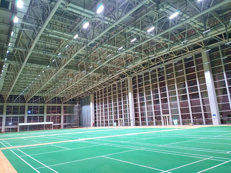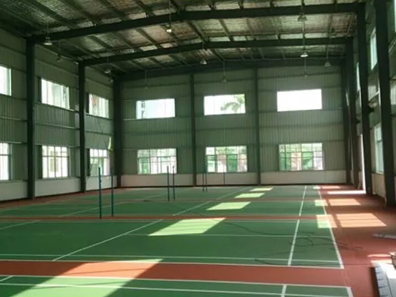 Prostor brez stebrov z velikim razponom: V primerjavi s tradicionalnimi zgradbami iz betonske konstrukcije lahko dvorana za badminton z jekleno konstrukcijo doseže, da stebri ne blokirajo pogleda v notranjost prizorišča, kar močno prihrani prostor prizorišča in zagotavlja tudi boljšo izkušnjo gledanja za gledalce.